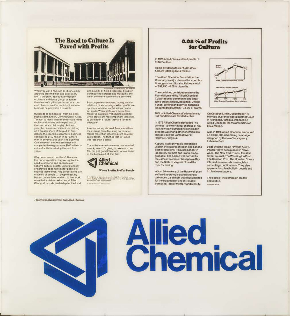 Företaget Allied Chemicals använde kulturstöd för att polera sitt rykte, medan miljöskandalerna gav en annan bild. Intendent Jo Widoff berättar om Haackes klassiska verk.